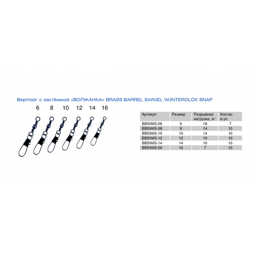 Вертлюг с застежкой "ВОЛЖАНКА" Brass Barrel Swivel W/Interlock Snap # 10 тест 14кг (10шт) BBSWIS-10